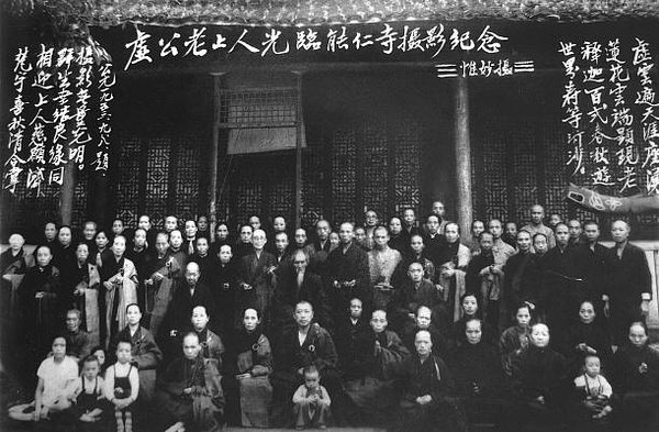 The Master then went on to Hangzhou, staying at Compassion monastery or Jinci Si. While there several thousands of the faithful became his students, formally taking refuge under his spiritual guidance. The local government asked him to become abbot of Ling Yin monastery but he said no because of his age and health. He was then asked to go to Suzhou to lead a Dharma meeting, and after that he paid a visit to Tiger Hill. There he paid his respects to the stupa of Master Shao, long a descendant of Master Lin Chi (who founded the Lin Chi Chan School). When he got there he saw that the site had been plundered. The last time he had been there was when Emperor Guang Xu was on the throne but now the site was demolished. The Master talked to the local government and they contacted Buddhists from Shanghai who gave enough money to rebuild it. The abbots Miao Zhen and Chu Guang were asked to stay there and supervise. On the way to Suxhou the Master stopped at Shou Sheng monastery in Ban Tang. There he paid his respects at Master Yuan Shanji’s stupa. Then the Nantong Buddhists asked him to go to Lang Mountain. There he held a Dharma meeting and several thousand people formally took refuge under the Master. He then returned to Shanghai in March. In April a telegram came from Beijing asking the Master to go back there. He went and stayed again at Guang ji monastery. There the Buddhist Association was formally founded and many monks came from all over China. Some monks attending wanted to change the precepts, they wanted to end vegetarianism and celibacy as in Japan & some even bought their wife’s along. The Master refused firmly, loudly thumping his fist on the table. His wishes were agreed to and accepted by the government. After he wrote an essay on the corruption of the Sangha in the Dharma- ending age.